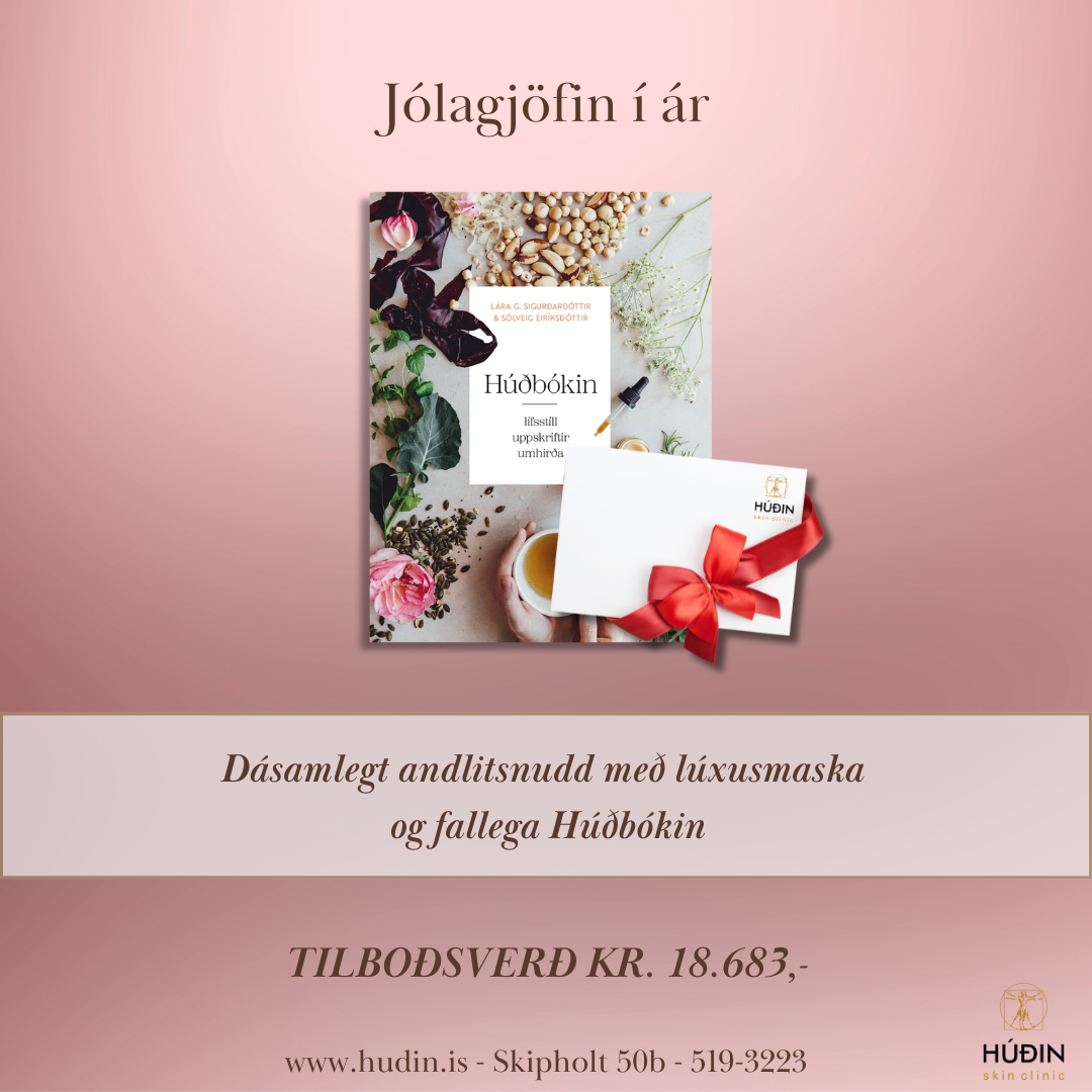 Jólagjöfin er dásamlegt andlitsnudd með lúxusmaska og fallega húðbókin. Hentar fyrir alla.